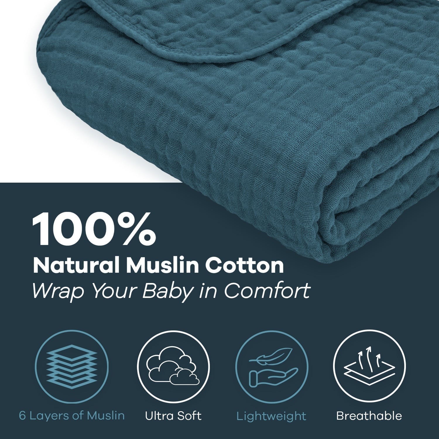 Plush Muslin Cotton – Softer and more breathable than standard baby blankets this large muslin blanket features 6 individual layers carefully woven together to create enhanced comfort that your baby can feel.
