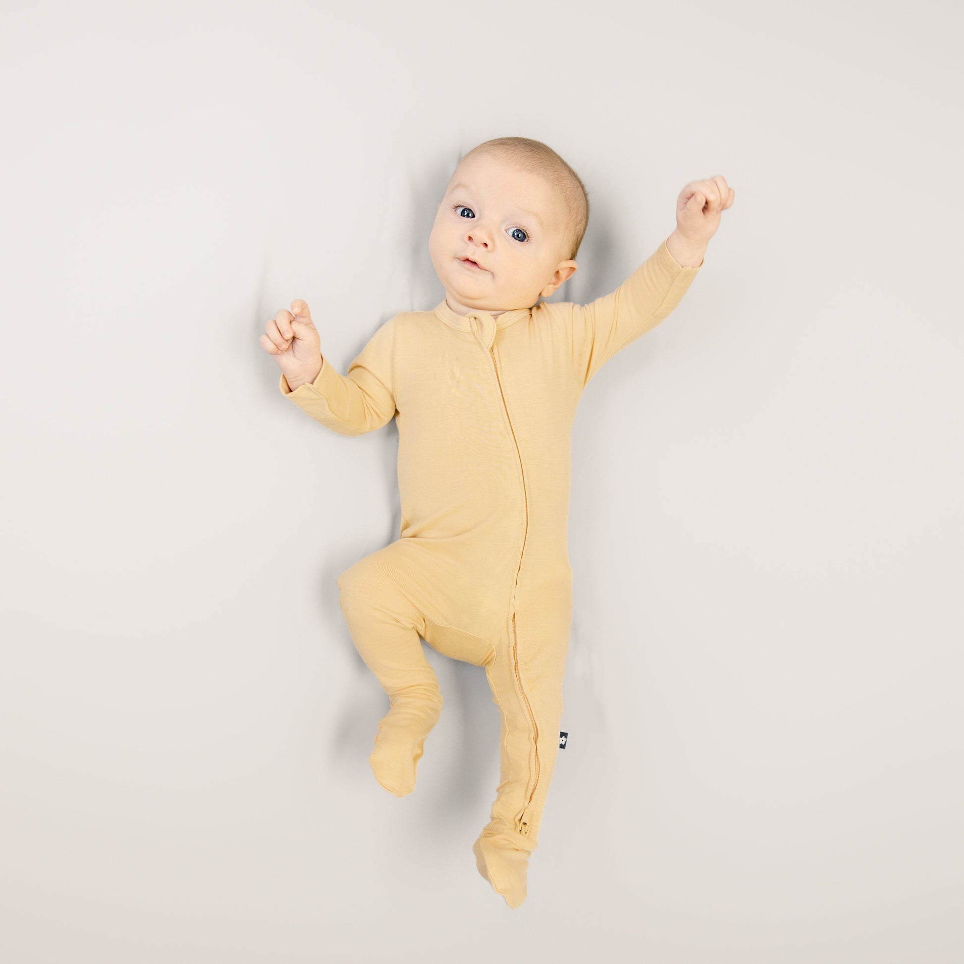 Larkspur Baby Zip Footie in Golden Sand