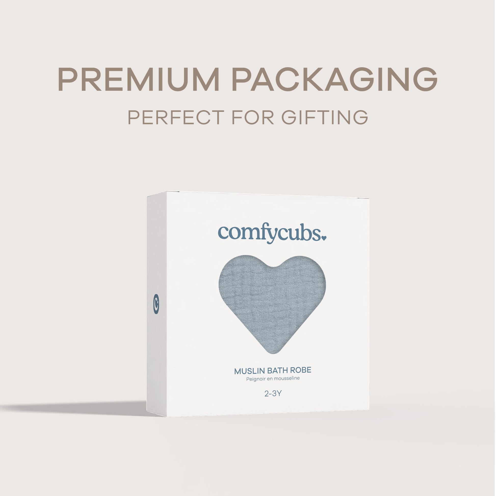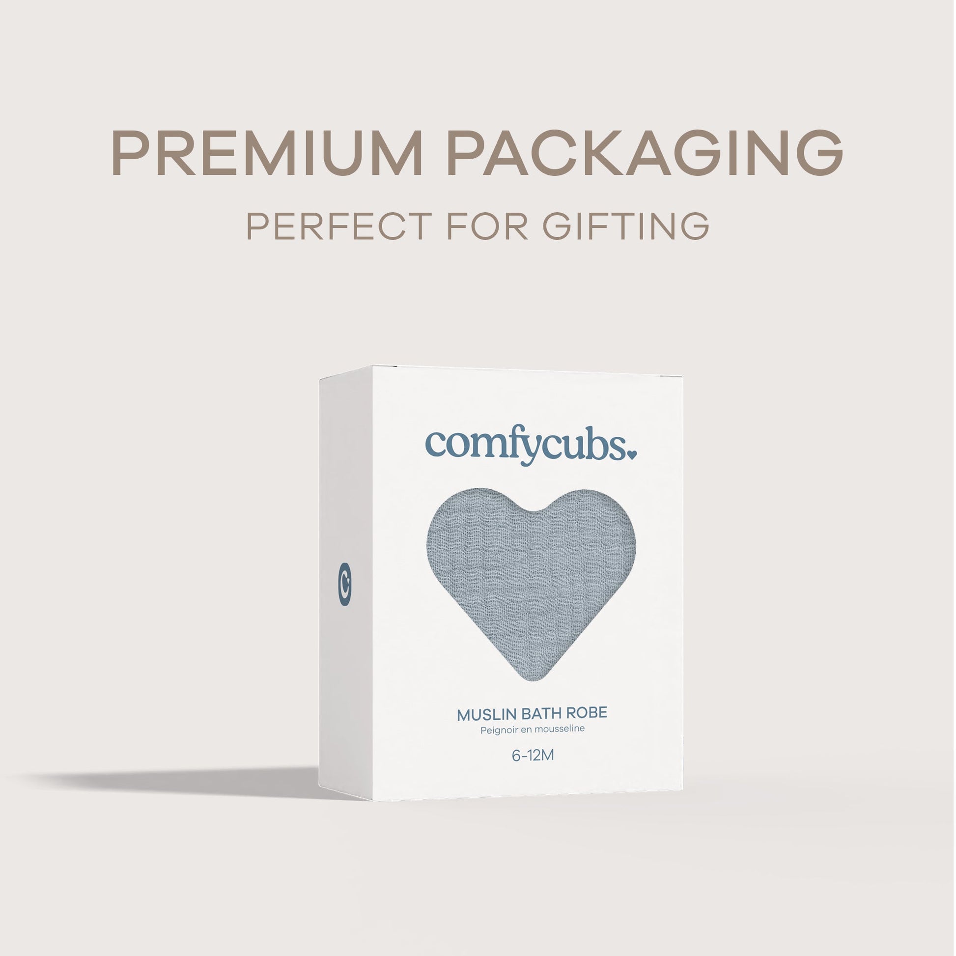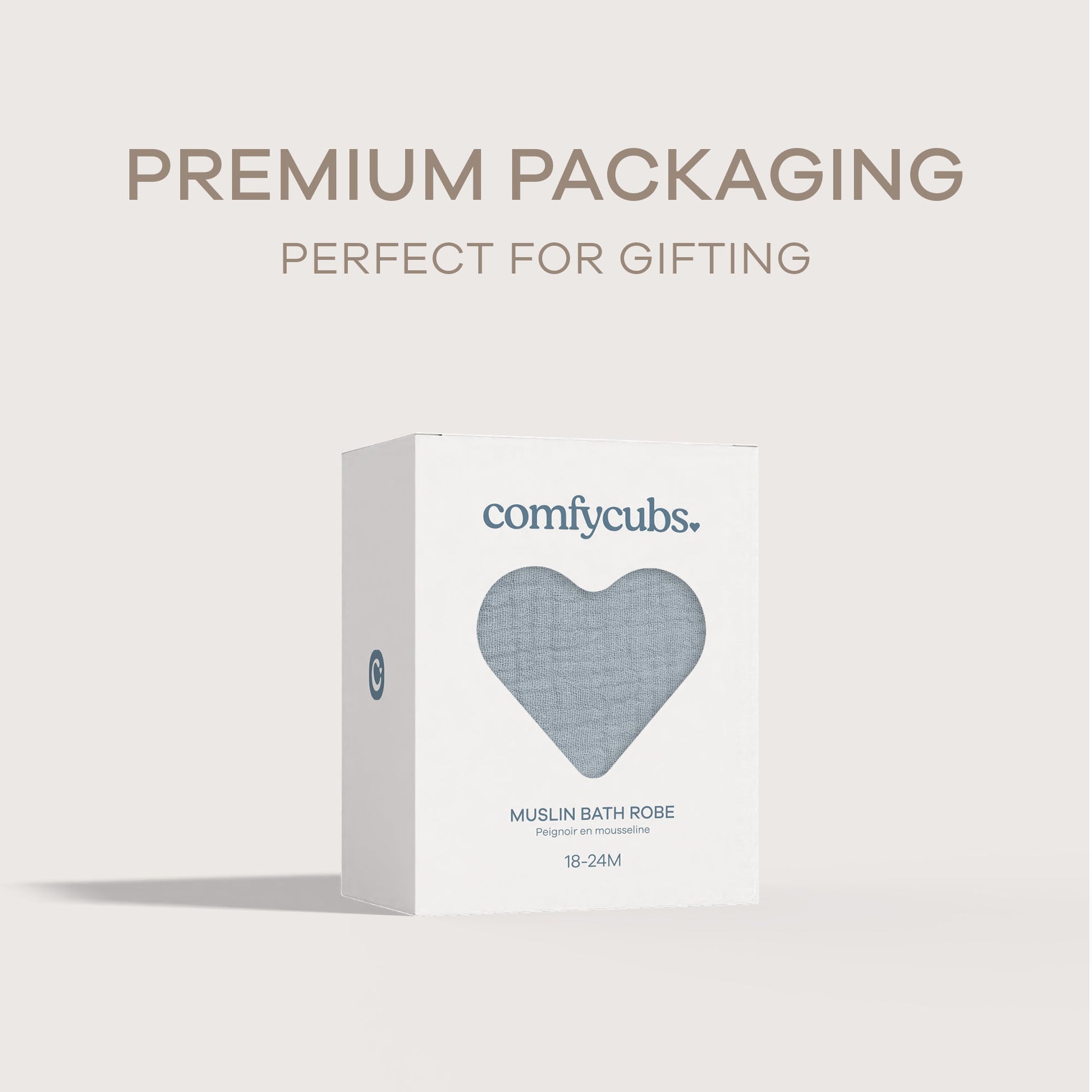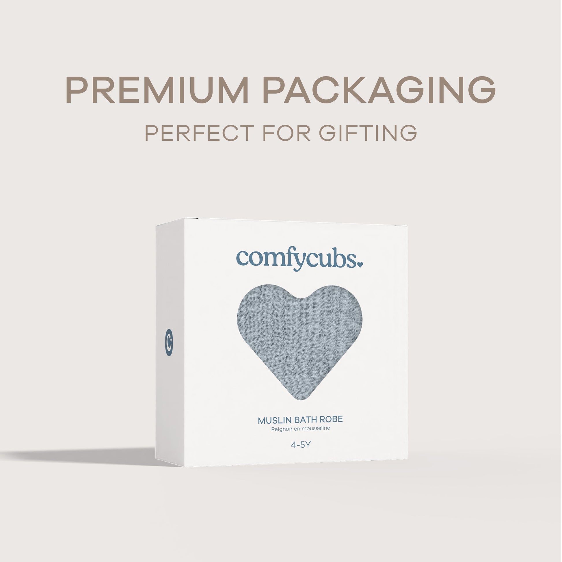 Gentle Comfort: Made with 100% cotton in a 4-layer muslin design, the Comfy Cubs cotton robe offers a calming feel, making it ideal for children to relax and dry off after bath time.