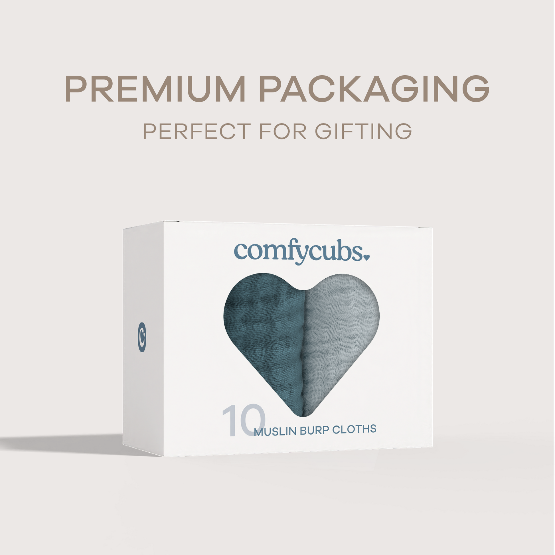 Beautiful Gift Packaging: Our Comfy Cubs muslin burp cloths come in stunning gift packaging, making them super giftable and the perfect newborn or baby shower gift for new parents. There's no need to gift wrap, just shop and gift or add them to the baby registry. They are perfect for both girls and boys.
